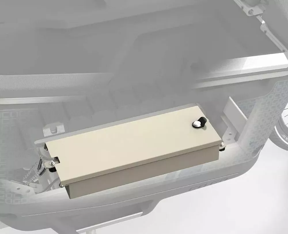 - Abschließbarer Battery-Safe (DualBattery Reader): Ob ein oder zwei Akkus (zweiter Akku optional), im schwimmend, im Boden der Ladefläche gelagerten Edelstahl-Safe liegen sie gut geschützt. Sicher vor Beschädigungen und Langfingern zahlt der Battery-Safe zudem auf den niedrigen Schwerpunkt und das angenehme Fahrverhalten ein.