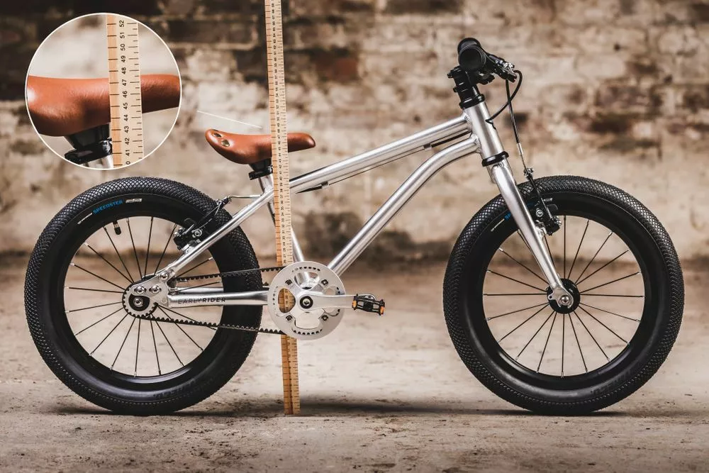- Innenbein: 45 cm (Early Riders dimensionieren ihre Fahrräder nach Innenbein. Diese Messung ist von der Oberseite des inneren Beines bis zur Unterseite der ferse)