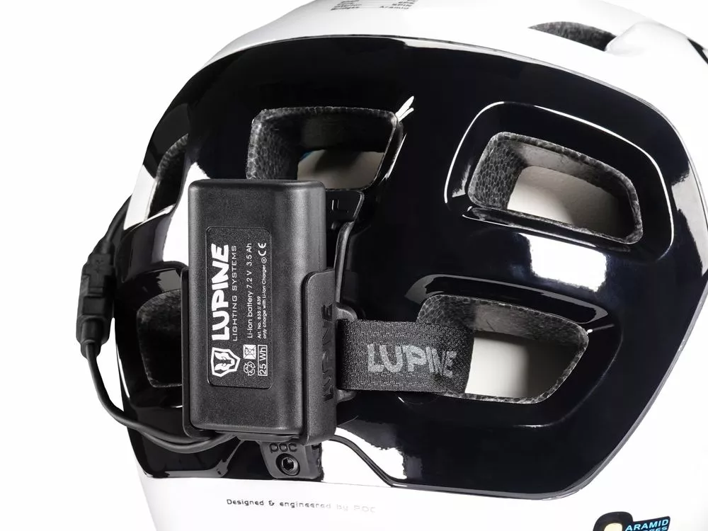 Die Blika als Helmlampe mit 2400 Lumen für Helme mit Lüftungsschlitzen. Das FrontClick System erlaubt einen schnellen Wechsel des Lampenkopfes auf einen anderen Helm oder ein anderes Stirnband. Der Akku wird per FastClick System direkt am Helm getragen und kann ebenfalls mit wenigen Handgriffen gewechselt werden.