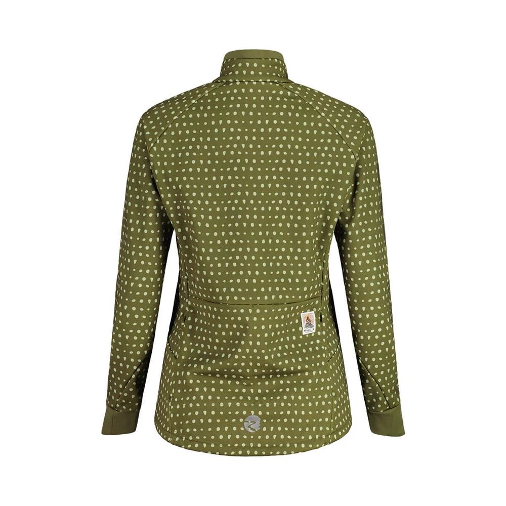 Die winddichte, wärmende Jacke ist Teil unserer Glide&Ride-Linie und eignet sich für Langlauf und zum Biken. Durch den Zwei-Wege-Zip lässt sich die Jacke zur Belüftung von unten öffnen, zwei Reißverschluss-Rückentaschen. Allover-Prints, vertikaler Maloja-Schriftzug neben dem Reißverschluss.