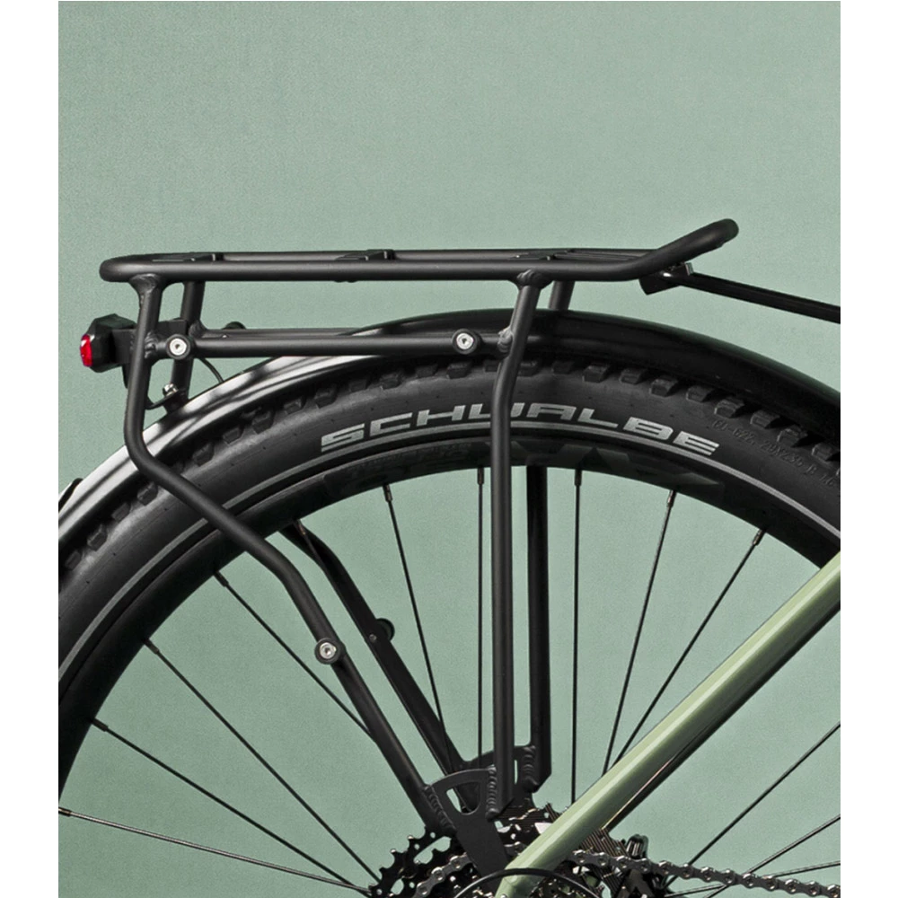 Am Kemen SUV sitzt ein besonders stabiler Gepäckträger, der an den Ausfallenden und dem Unterrohr befestigt ist. Mit einer Traglast von 27 Kilogramm kannst du ihn mit unserem OC Dual Bag, einem Kindersitz oder jedem MIK HD und Ortlieb QL3.1 kompatiblen Zubehör nutzen. Entspann dich und überlass die schwere Arbeit dem Kemen SUV.