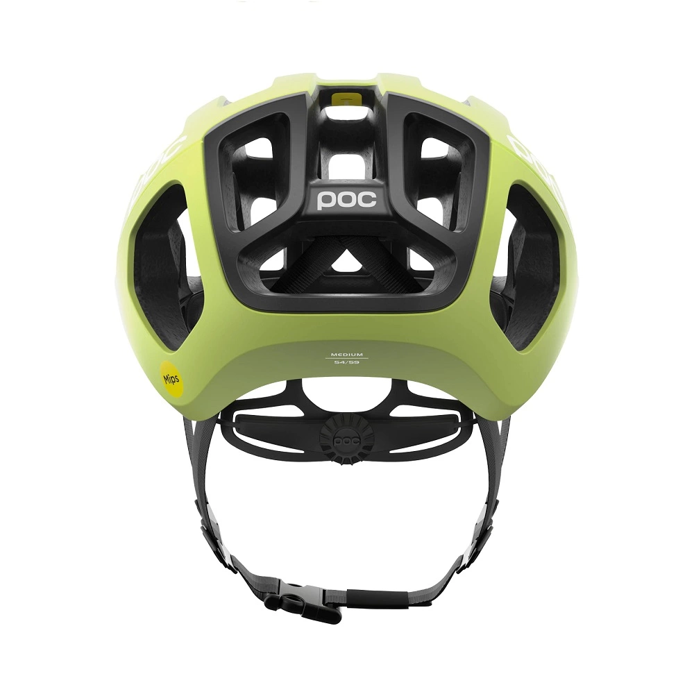 Das Ventral Air Mips System verbessert das aerodynamische Profil des Fahrers und minimiert den Luftwiderstand. Spezifische Luftstromzonen verbessern die Belüftung und Kühlung, während die aerodynamisch optimierte Hinterkante Verwirbelungen reduziert. Der außergewöhnlich leichte Rennradhelm wurde nach dem Whole Helmet Concept™ von POC entwickelt.