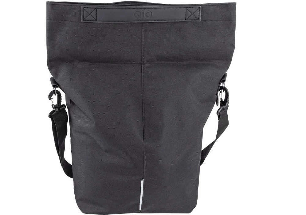 SB-verpackt, Faltverschluß mit Magnet, wasserabweisend, Innenfach mit Reißverschluß, Griffe aus veganem Leder, abnehmbarer Schultergurt, mittels Hook-On-System am HR-Gepäckträger zu montieren, Befestigungsmöglichkeit für LED, Reflexapplikationen